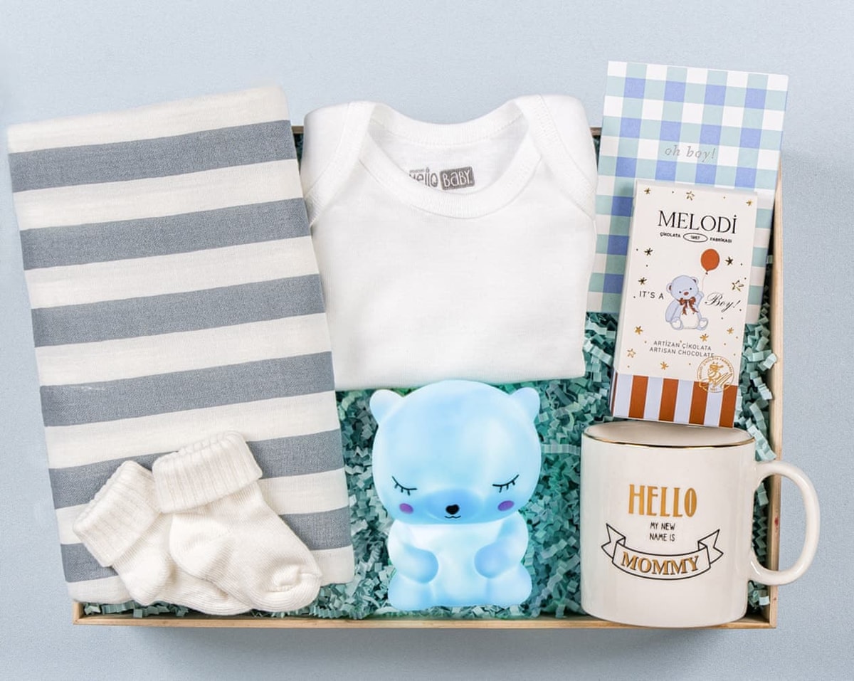 Ayıcık Işıklı Erkek Bebek Hediye Kutusu